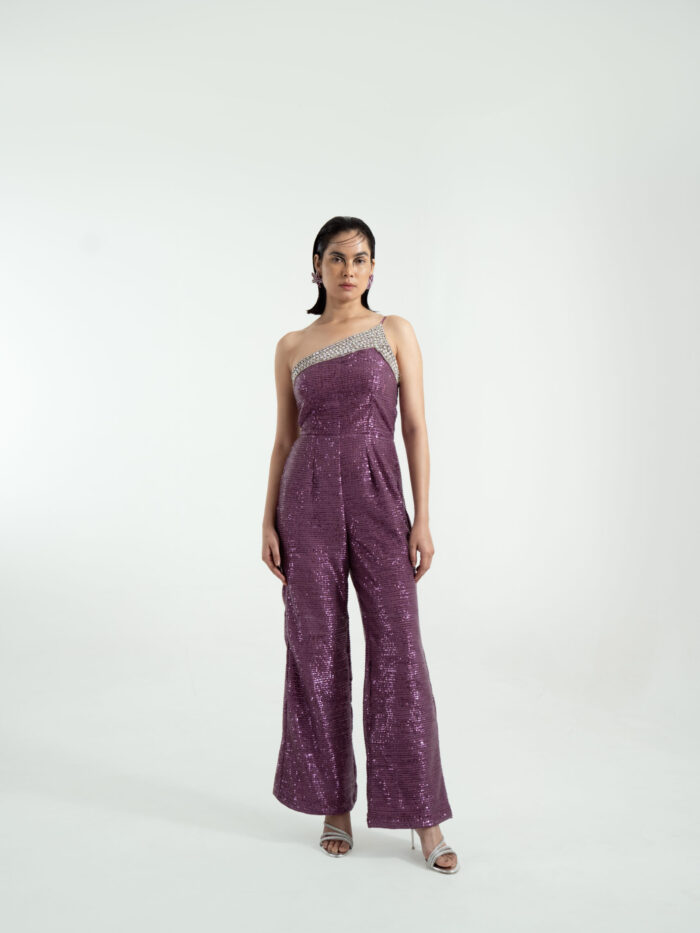 - Silhouette: Corset-look torso, straight-leg jumpsuit