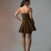 - Design: Tube neckline, sculpted bust, flared mini skirt