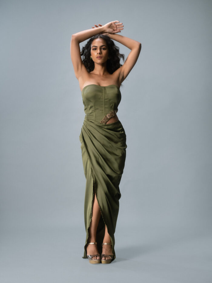 Crafted in a premium imported crepe with a soft structure and inner lining, this piece is finished with a touch of can-can underneath to add playful volume. Padded for comfort and designed for celebration, it’s made for your dream-girl era.